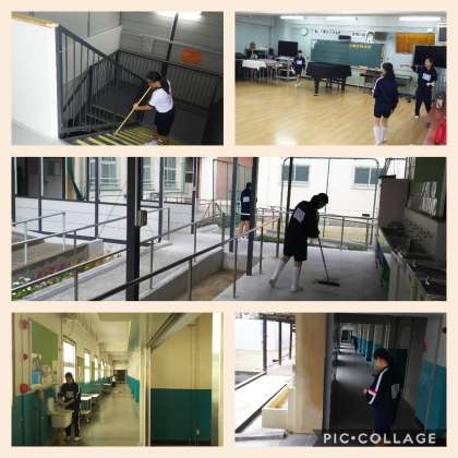 いつも練習前には、清掃活動から始まります。