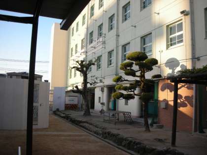 西館理科室前に植木が2本あります。