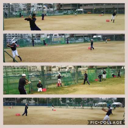 第二グラウンドでは、ソフトテニス部と野球部が練習をしています。