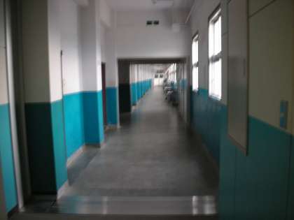 3枚目は、西館4階の廊下です。エレベーターホールから音楽室方向を撮影したものです。もちろん誰もいません。あと1時間ほどしたら、生徒の元気な声が聞こえてきます。