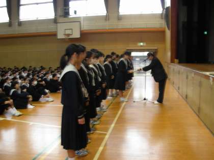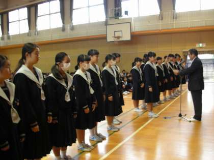 大阪市立中学校総合文化祭の表彰状の伝達です。