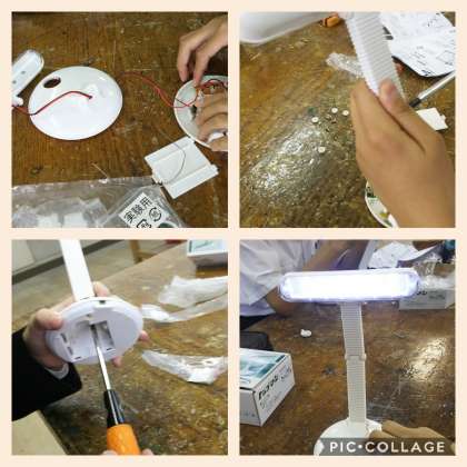 技術室では、2年4組が実習をしていました。蛍光灯のスタンドを製作していました。