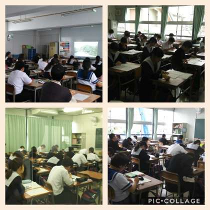 3時間目の2年生の授業の様子です。 1組は美術、2組は数学、3組は英語、4組は国語の授業です。