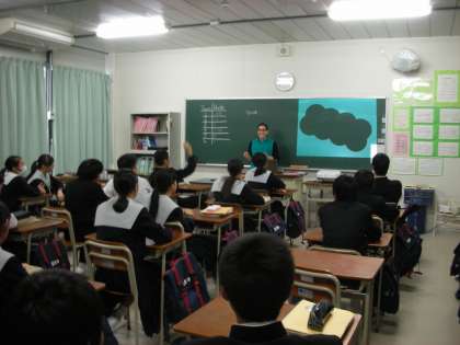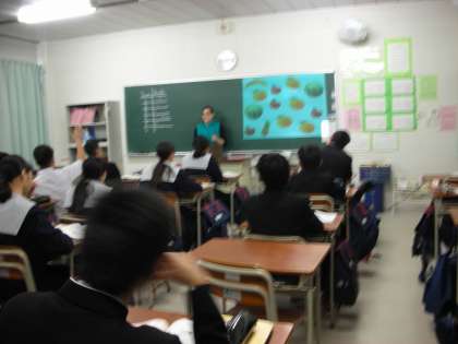 2年1組では、エイドリアン先生と丸尾先生が英語の授業をしています。