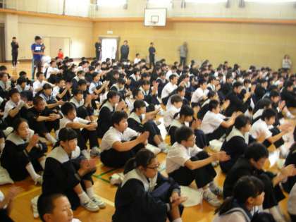 フロアの生徒たちは、演説に耳を傾け、演説が終わると大きな拍手をしていました。