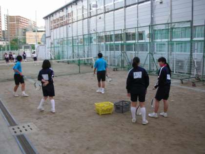 ソフトテニス部が川西先生のもとで、一生懸命練習に励んでいます。
