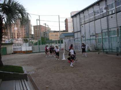 狭いグラウンドですが、工夫して練習をしています。