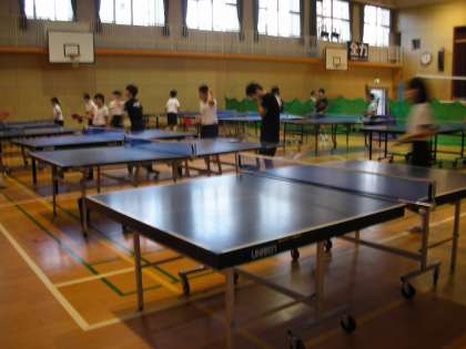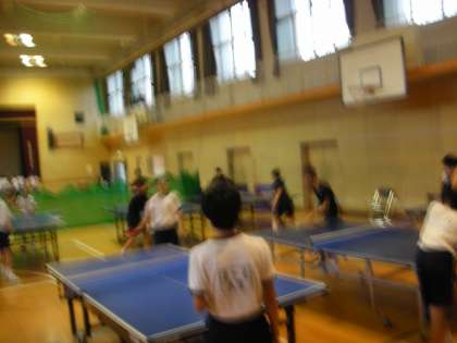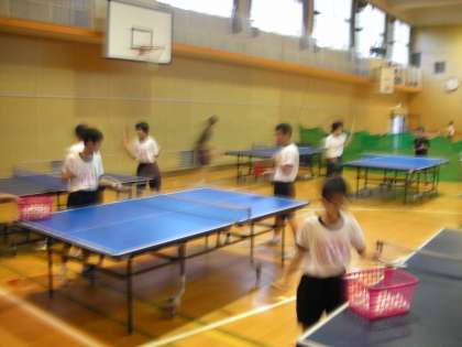 体育館では、卓球部も練習をしています。