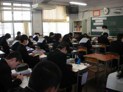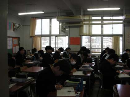 生徒たちは、田嶋先生が板書されたことをノートに写しています。