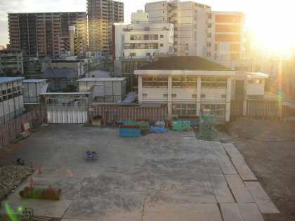 上の写真は、西館4階から撮影した東の方向です。まぶしい朝日が照りつけています。