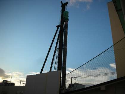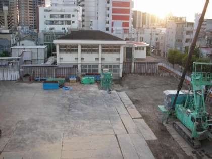 真ん中の写真は、理科室前から撮影した南東方向の写真です。杭打の重機が高くそびえています。