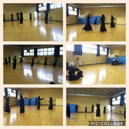 剣道部は、格技室で稽古をしています。大きな気合いの入った声で、素振りや打ち込みの稽古をしています。