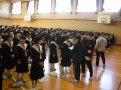 今日から後期生徒会役員が全体指揮を執ります。まだ慣れていない状態ですが、一生懸命頑張っています。