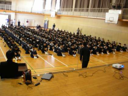 各委員会報告が行われました。各委員会の委員長も初めて全校集会でしゃべります。