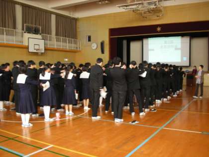 トイレ休憩の後、整列、岡本先生から諸注意を含めてお話がありました。
