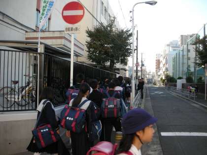 下の写真は、中学生と小学生が大勢登校する時間帯のものです。