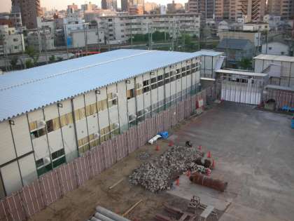 下は、仮設校舎方向を撮影したものです。掘りだされたがれきが積まれています。