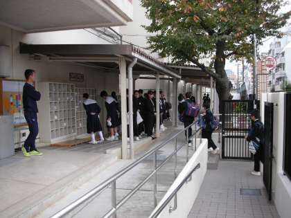 今日は、全校集会を行うので、すでに登校した生徒は続々と体育館に入っていきます。