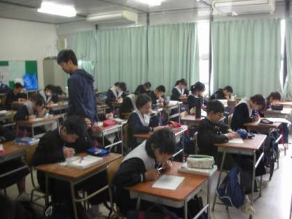 上は、4組の国語の授業です。振り返りプリントをしています。