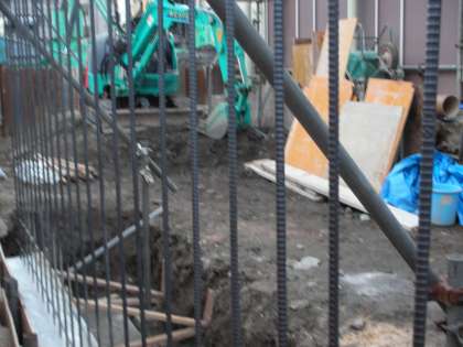 現在は、カミナリガード側の門(工事車両が進入する門)から給食が鉾ばれていますが、南館が完成した後は、この通路を使い、南館に運ばれることになります。