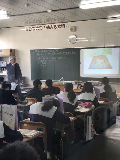 下は、1年3組の社会科の授業です。歴史分野の学習をしています。