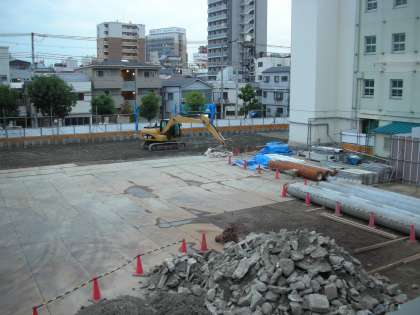 工事現場の重機は黄色いショベルカー1台だけになっています。
