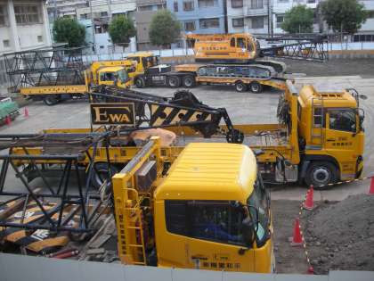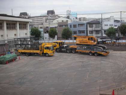 朝から大型のトラックが数台入ってきました。それぞれの車両に重機の部品が積まれいれました。