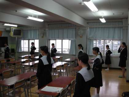 生徒たちは、いつも通りの練習をしています。