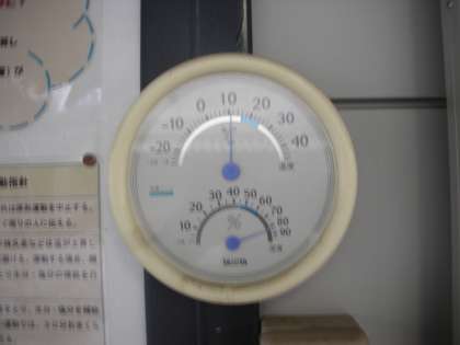 午前7時現在の仮設校舎前の温度計は、気温10.5度、湿度83パーセントを示しています。