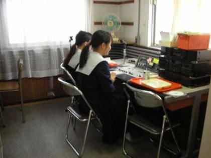 本日の放送室の様子です。 1年生部員が頑張っています。 今日のテーマは、アニソンです。
