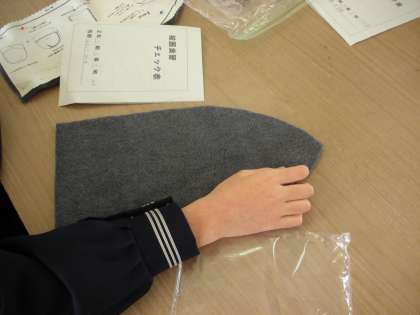 2年4組の家庭科の授業です。被覆室で帽子の製作をしています。この時は、授業の終盤のため後片付けが始まっていました。