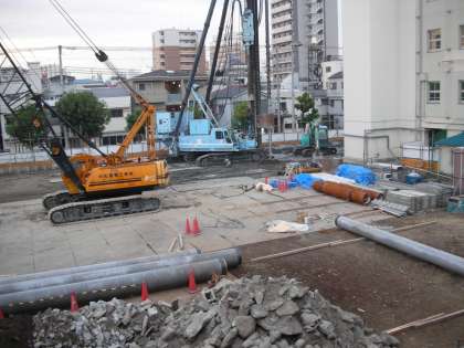 新たな重機が導入され、順調に杭打ちが進められています。地中の障壁になっていた者が撤去され、スムーズに杭が入っています。大切な新南館の土台になる部分を丁寧に仕上げているところです。