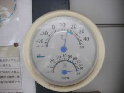 さて、仮設校舎前の温度計は、午前7時現在、気温16.2度、湿度95パーセントです。