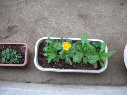 仮設校舎前にプランターが設置されています。