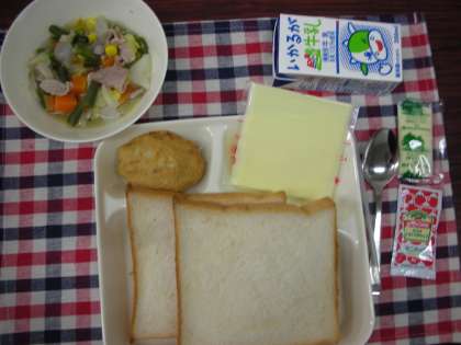 2枚のパンには、マーガリンとスライスチーズが添えられているので、違った味わいを楽しむことができました。