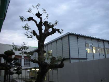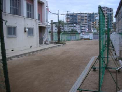 下は、仮設校舎前の廊下から撮影したグラウンド、体育館です。
