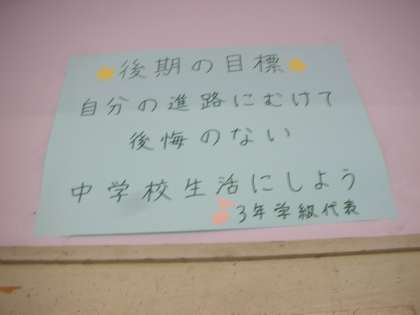 3年生の学級代表の目標です。