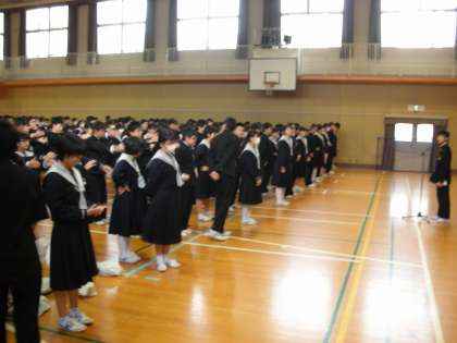 今日も、生徒たちは、日ごろよりも少し早く登校してきたようです。8時25分には整列が完了していました。