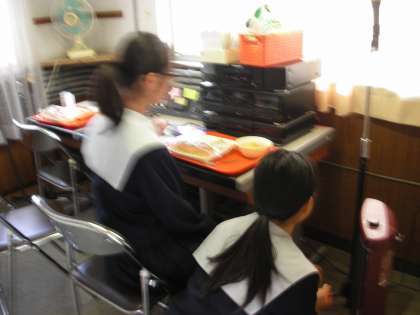 放送室は、校舎の外にあるので、寒さを強く感じます。電気ストーブをつけて暖を取ります。