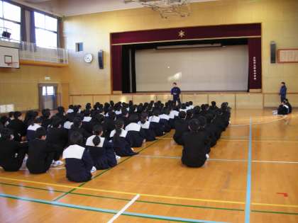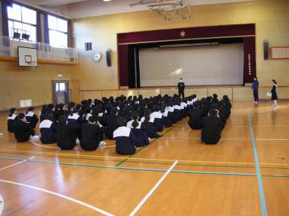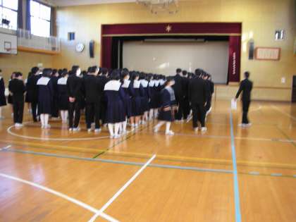 生徒の力で、整列、人員点呼を行っています。8時24分に集会が始まりました。3年生も頑張っていますね。