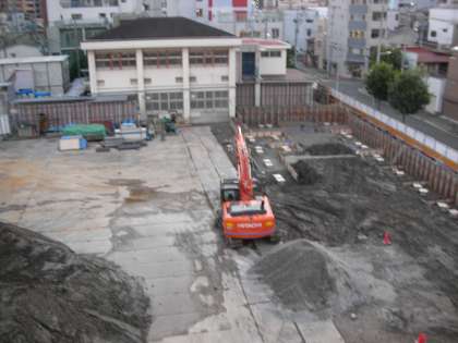 南館の基礎部分がはっきりとわかるようになってきました。日々その形が変わっていきます。