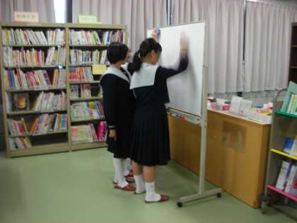 今日は、文芸部のビデオ撮影の日です。写真を撮ったのは、ビデオ撮影が終わった直後の様子です。みんな『ホッ』として様子でした。後片付けする人、読書している人と様々な活動をしていました。