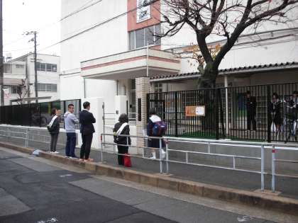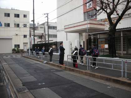 正門の中では、風紀委員の人たちが毎日、『あいさつ運動』をしています。