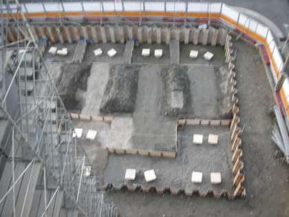 下は、南館西側の基礎部分です。左に見えるのは、エレベーター棟です。