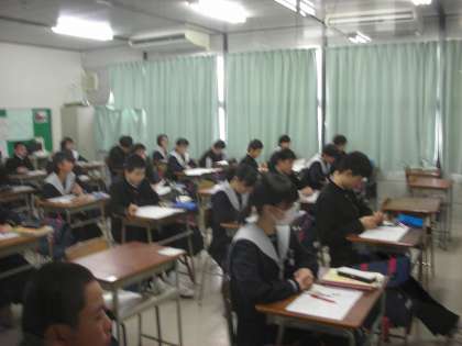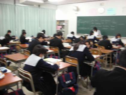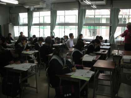 上から1組の社会、3組の英語、4組の数学の様子です。落ち着いた状況で学習をしています。