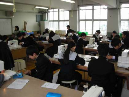 家庭科では、調理実習と被服実習が大きな柱になっています。どちらも「ものを創る」ということばがキーワードになります。週に1時間しか行われない授業の中で、工夫しながら実習を行っています。