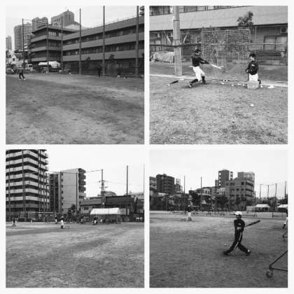 テニスボールを使ったフリーバッティングとティーバッティングを分かれて行っています。