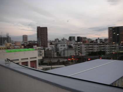 上は西の方角です。中野小学校のグラウンドには、工事のための仮囲いが見えます。
