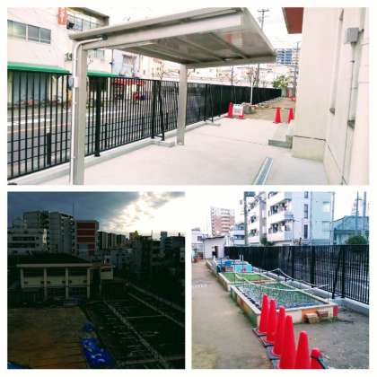 下の写真は、3枚一組の写真です。上の1枚は北側の駒込柵です。完成間近です。とても見通しも風通しも良くなりました。この後、樹木が植えら獲れるそうです。