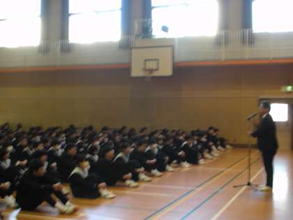 校長講話では、2学期終業式でお話したことに触れ、「冬休み中に体調を崩した人はいないかどうか」「事故等にあった人はいないかどうか」「もし、何か変わったことがあった人は、先生に報告してください」と、話しました。